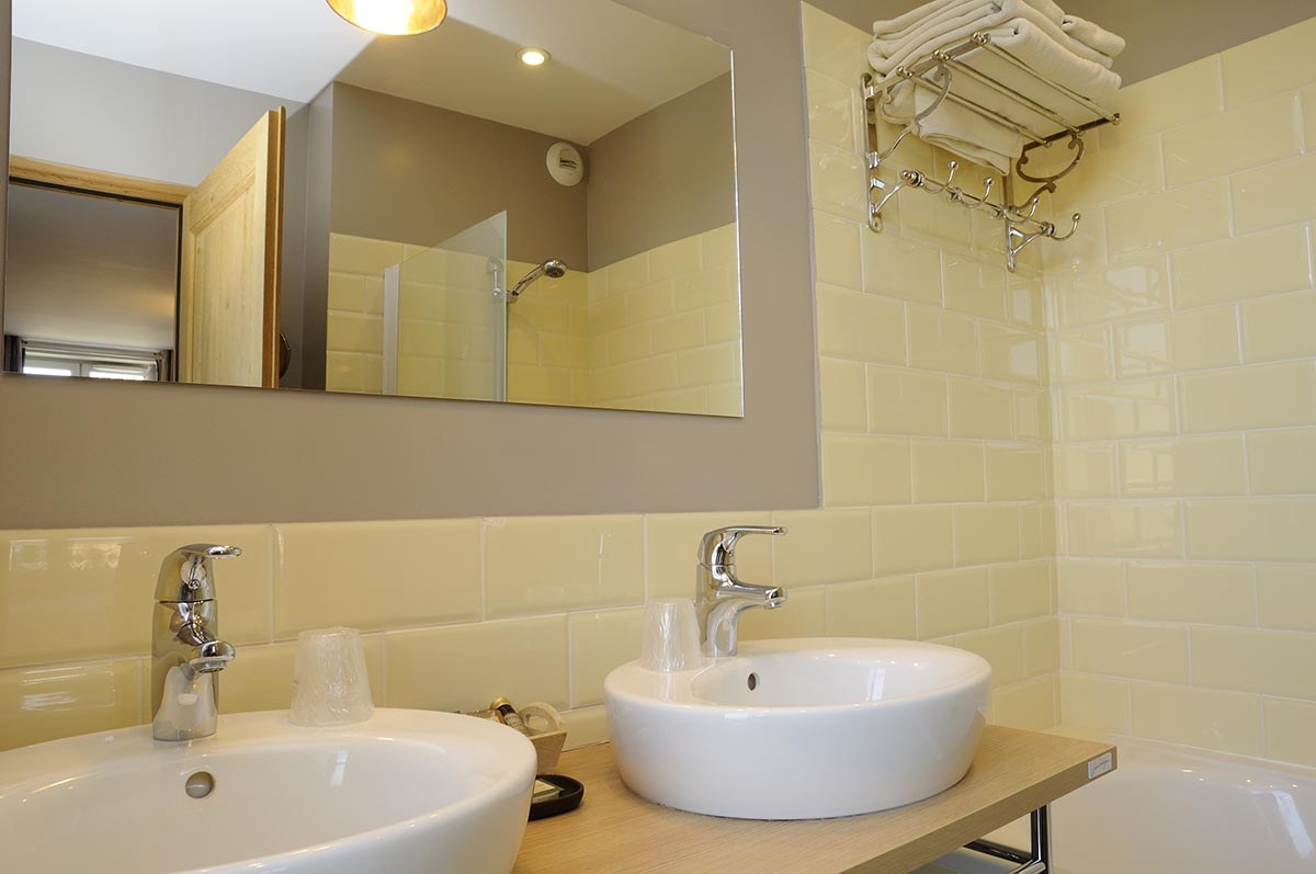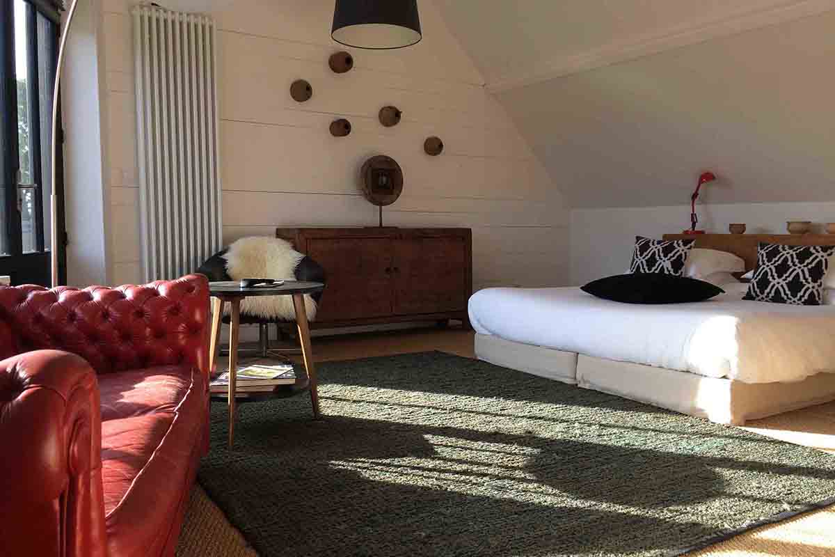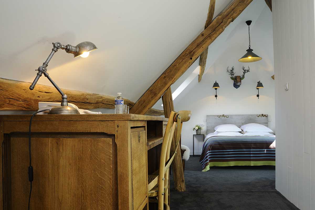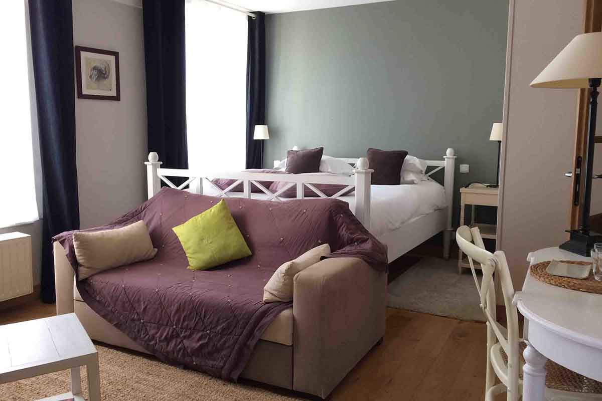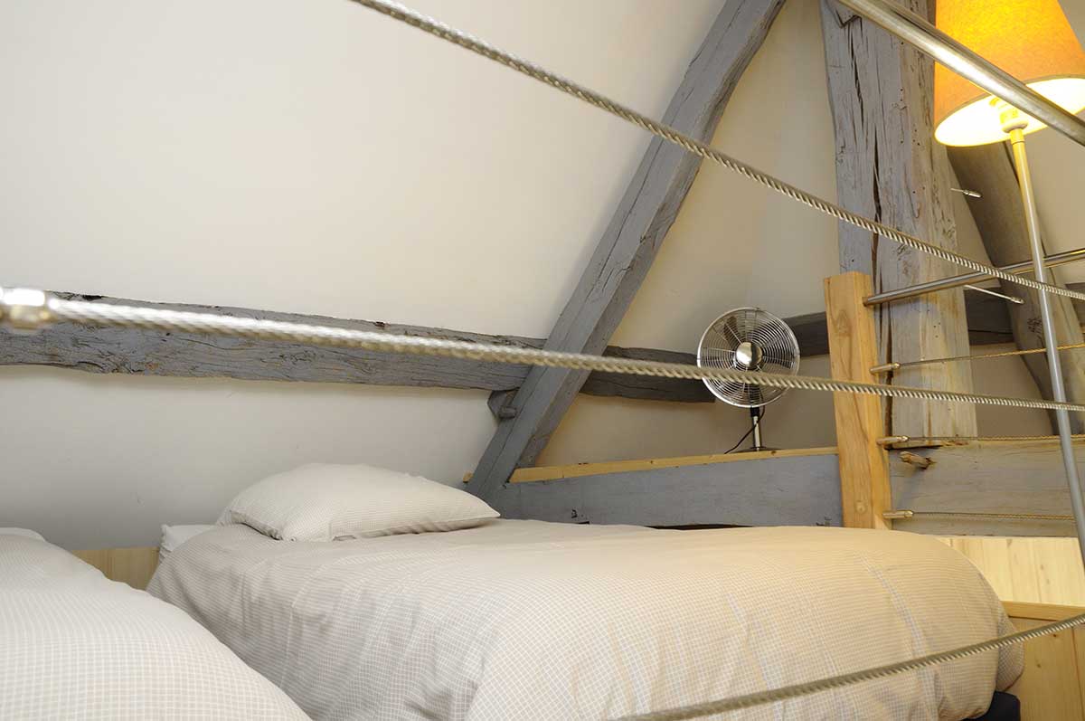 La chambre familiale est une chambre supérieure qui intègre une mezzanine où sont installés les 2 lits jumeaux.