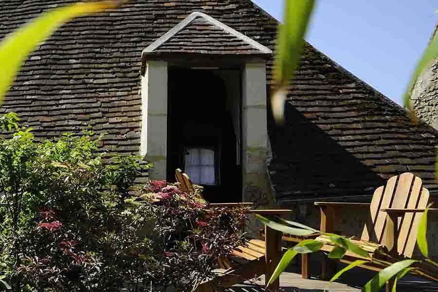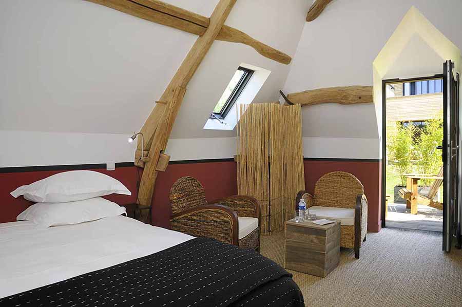 Située côté jardin dans le bâtiment principal au 1er étage, cette chambre dispose d'une terrasse privée