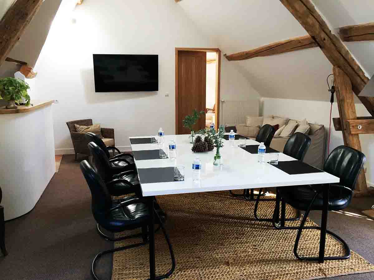 - Salle de réunion (10-12 pers. max) : Wifi, vidéo projecteur, smart TV grand écran, paper-boards, rallonges…